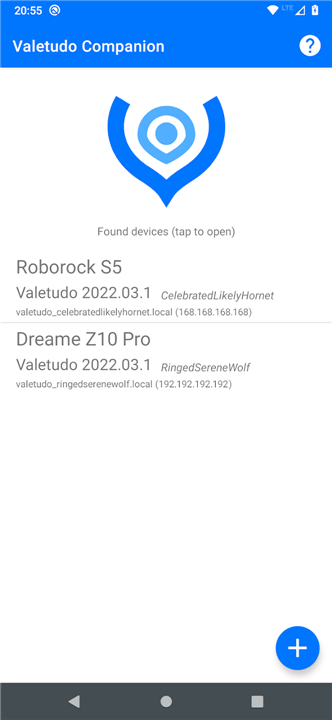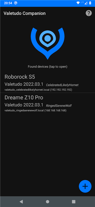 + Tapping an entry instantly opens the Valetudo control panel in a browser, bypass complex setup steps.