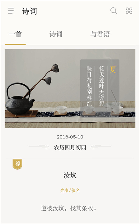 古诗词典是一款旨在提升古诗词学习的应用,收录近10万首经典作品,帮助用户轻松理解和欣赏古诗词。通过精美的中国风界面,应用不仅提供诗词的注解和译文,还与各类教材(如人教版和苏教版)无缝对接,助力学生在学习中提高效率。