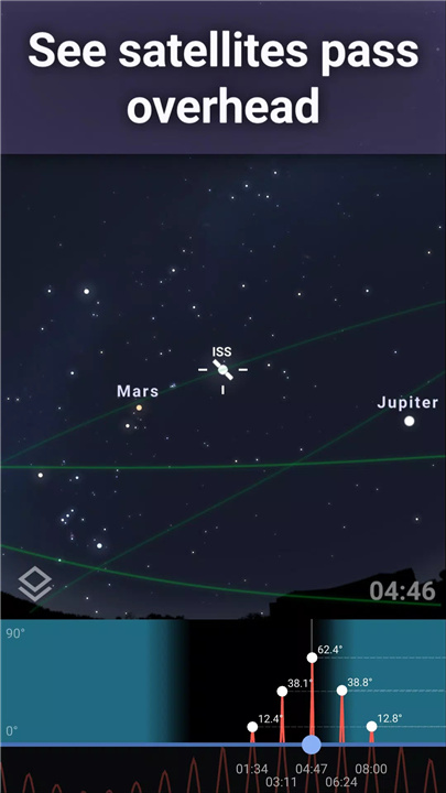 ✓ Real-time sky simulation: Experience a highly realistic simulation of the night sky, complete with accurate positions and movements of stars, planets, satellites, and other celestial objects, based on your location and time.