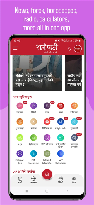 News, forex, horoscopes, radio, calculators, and more—all in one app. Download the latest version of Ratopati: Nepali News & More to enjoy new features and updates immediately!