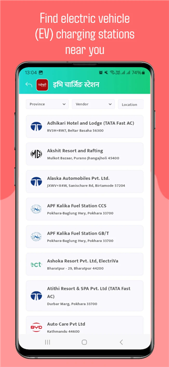 • Drive the future by locating the nearest electric vehicle charging stations throughout Nepal.