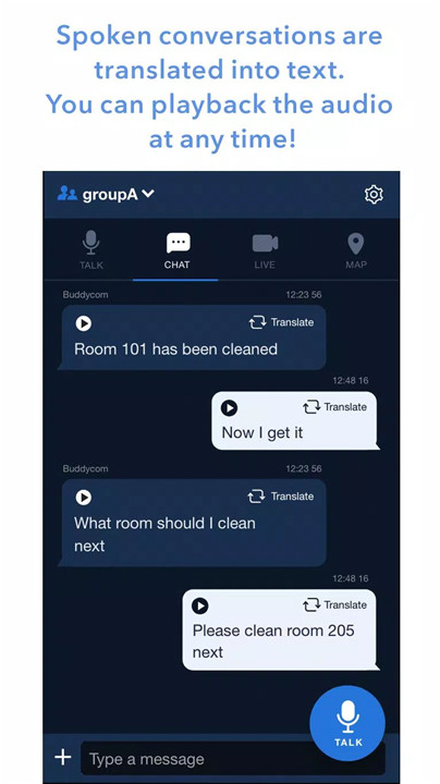 User-Friendly Interface: Designed for immediate usability, Buddycom boasts a simple interface where users initiate real-time communication with a single button press.