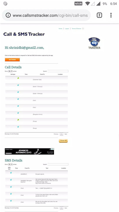 Message and Call Tracker allows you to track all incoming and outgoing calls as well as WhatsApp messages (text only). The app’s intuitive interface lets you easily view call and message logs by launching the app and tapping on the “View” button. For added convenience, you can also remotely access these records from any device by visiting the app’s website, logging in with your registered credentials, and pulling the data.