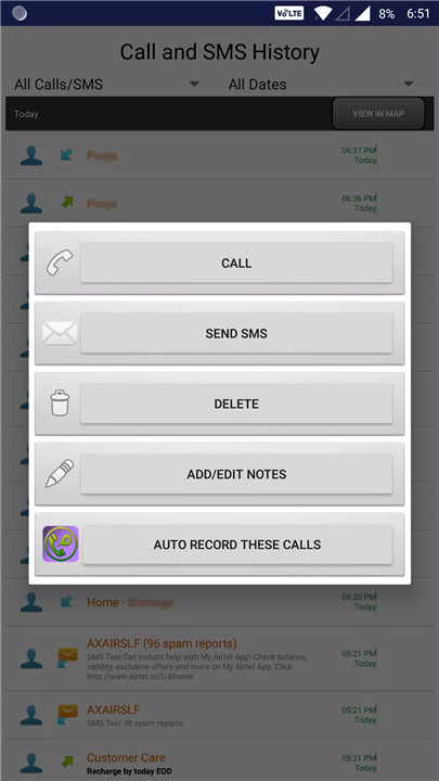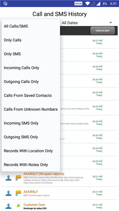 The app provides several filtering options to sort through calls and messages based on your preferences. You can filter records by date, contact, or type, making it easier to find specific details quickly. The ability to add notes to each record further enhances the tracking experience, allowing you to keep context for each communication.