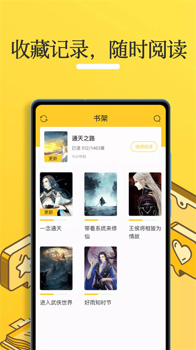 每次打开应用,书架上的阅读进度自动更新,让用户随时知道自己在阅读进程中的位置。