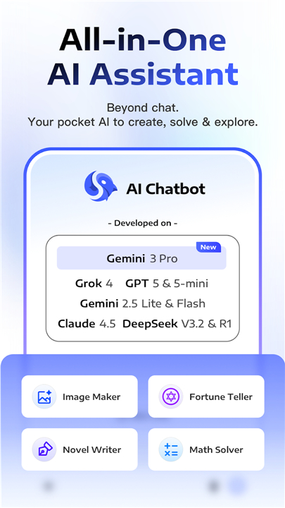 • Powered by the combined strengths of Gemini 3 Pro, GPT 5.2, Claude 4, DeepSeek V3.2 & R1, Grok 4, Qwen, and 2.5 Lite & Flash, AI Seek 2.0 transforms the idea of a chatbot into a versatile, intelligent companion.