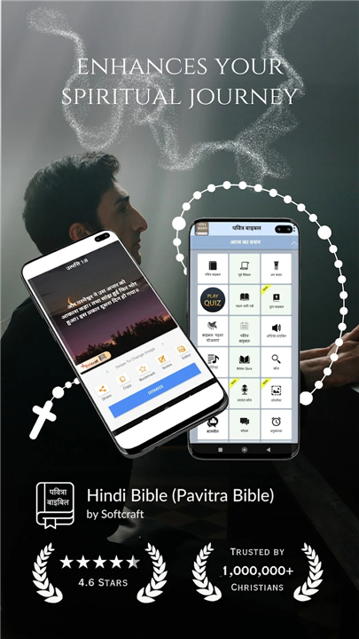 • This unique app contains both the Old Testament and New Testament in Hindi and English, offering a convenient and inspiring way to read, listen, and share God’s Word anytime, anywhere.