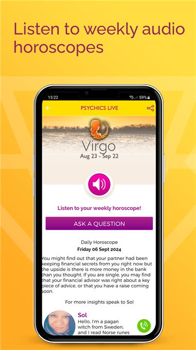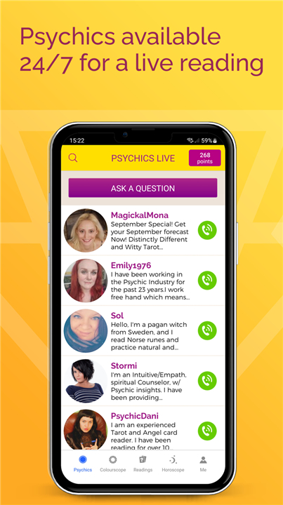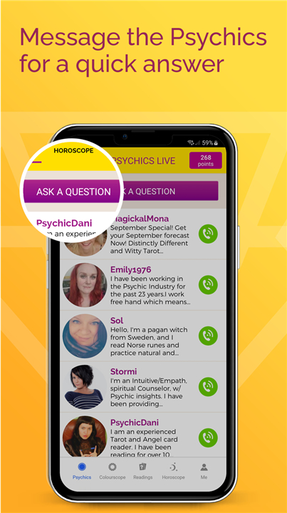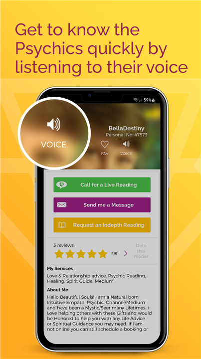 • Download the Psychics Live app and connect instantly with talented psychic readers from around the world.