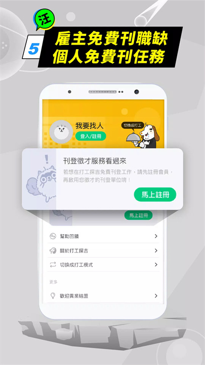 如果你是雇主,可以在“老板找伙伴”功能中免费刊登招聘信息,快速找到合适的打工伙伴。