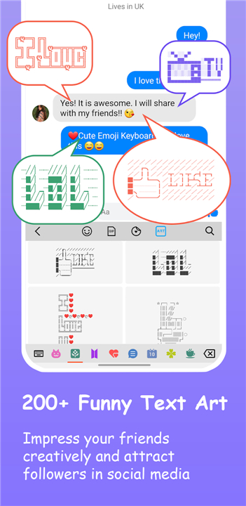 • Distinguish your messages and attract attention on social media platforms with unique "Funny Text Art," crafting visually appealing text formations to impress your audience and followers.