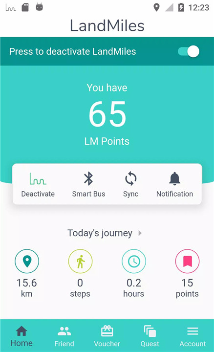 To begin earning LM points, simply activate the LandMiles app. You’ll see the app change from a red to a green backdrop when it’s working correctly. After that, you don’t need to do anything extra—LandMiles will automatically track your journey and reward you with points.