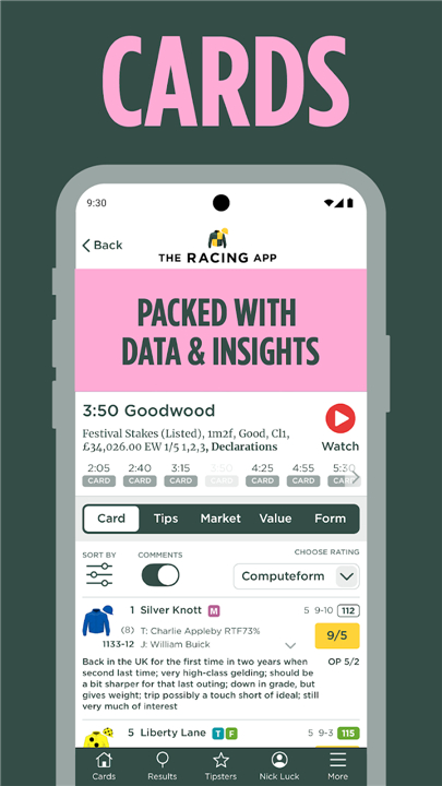 • Advanced Racecard Metrics: Choose between sophisticated Computeform, Speedform, or Star Rating metrics directly on racecards to suit your analytical style.