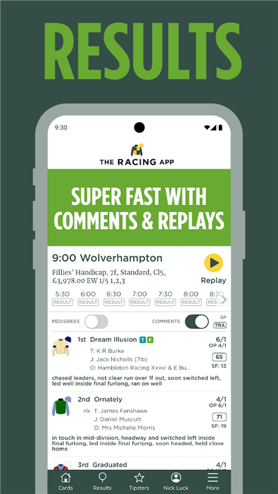 • Fast Results & Live Coverage: Get super-fast race results and enjoy live racing and replays*, vital for timely updates and review.