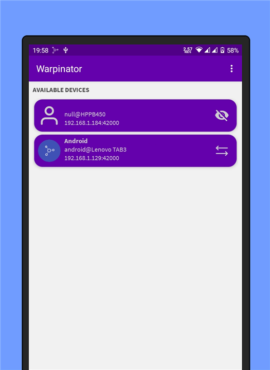 • The application automatically detects other compatible devices running Warpinator on the same local network.