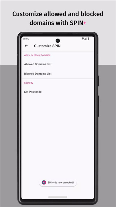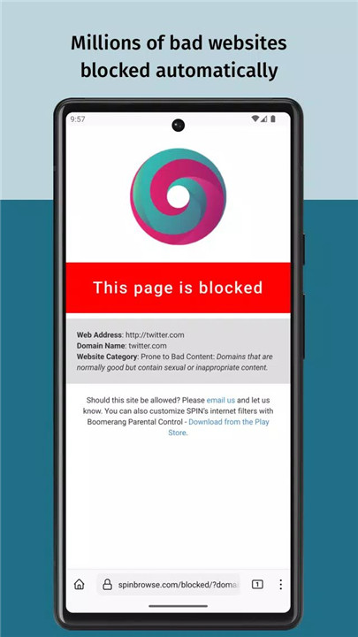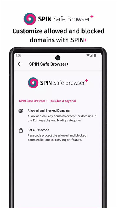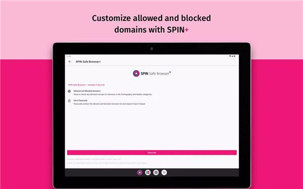 With a SPIN+ subscription, you can tailor your browsing experience even further. Features include the ability to allow or block specific domains, set a passcode to protect your settings, and save and restore bookmarks and other preferences. Note that domains containing pornography and nudity cannot be permitted.