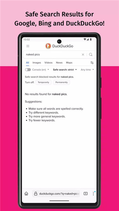 SPIN Safe Browser enforces Google’s Strict Safe Search and applies YouTube Restricted Mode to filter out inappropriate videos. It also supports safe browsing across various search engines, including Google, Bing, Ecosia, and DuckDuckGo.