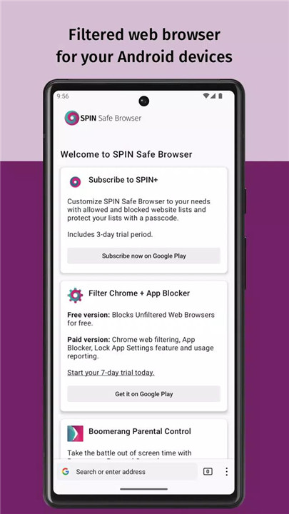 For users who seek more control, SPIN+ offers the ability to block or allow specific domains, manage web filtering settings for Chrome, and access premium parental control features with Boomerang Parental Control.