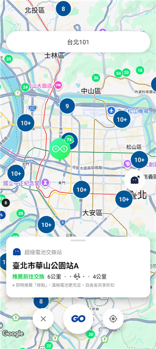 • The app's sophisticated algorithm analyzes your route and current battery level to automatically identify and recommend the most suitable Gogoro battery swapping station along your path.