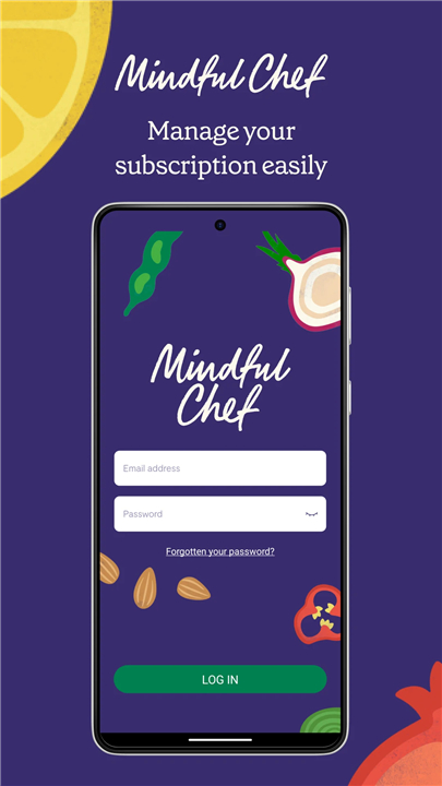 • If you are new to Mindful Chef, simply visit mindfulchef.com to create an account before using the app.