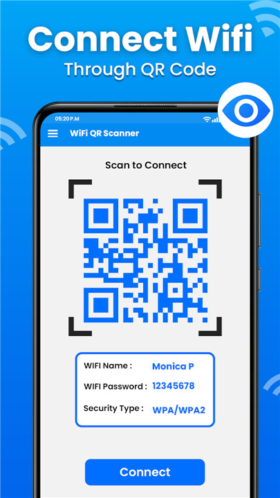 + The WiFi QR password scanner streamlines the way you connect to WiFi networks. By simply scanning a QR code, you can quickly access network information without having to type in any passwords.