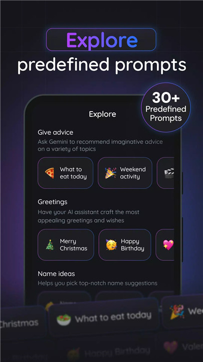 Not sure how to ask what you need? Explore Gemmy’s extensive library of custom prompts—designed for common scenarios like writing emails, composing tweets, naming a pet, or practicing a new language. These prompts help you jump-start any task with confidence.