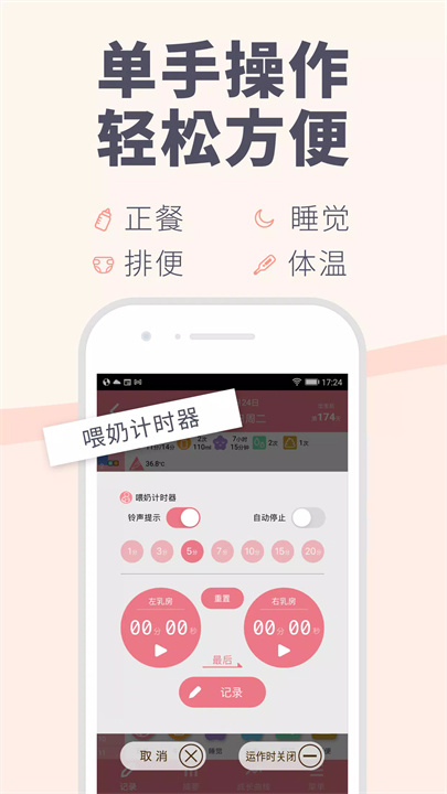 哺乳计时:内置计时器功能,帮助妈妈精准记录哺乳时间,避免遗漏。
