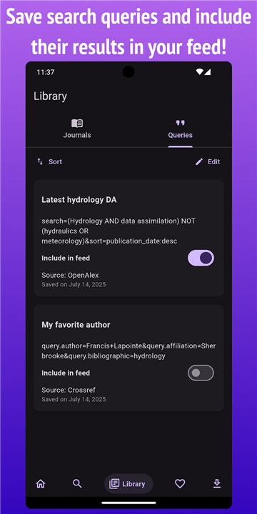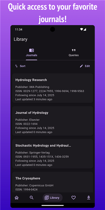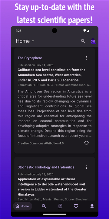 • Follow specific journals to receive the latest research abstracts directly in your main feed as soon as they are published.