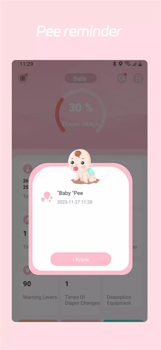 BabyN能实时监测宝宝的尿液和粪便,及时发出更换尿布的提醒,确保宝宝的舒适,预防红屁股。