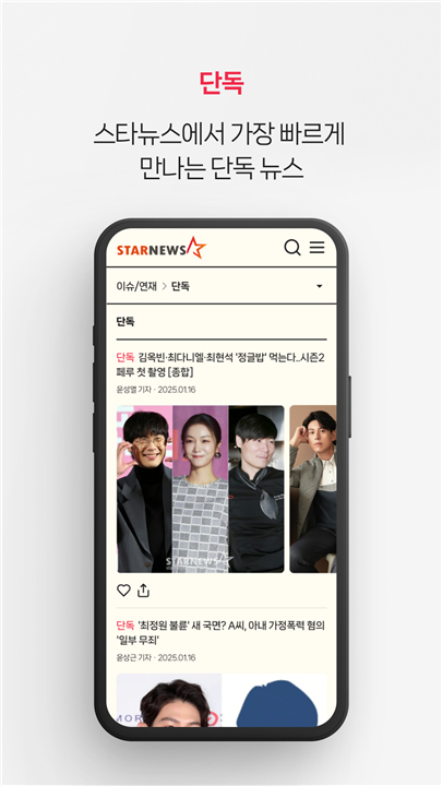 최신 연예뉴스와 스타 소식을 발빠르게 전해드립니다. Download the latest version of Star News to enjoy new features and updates immediately!