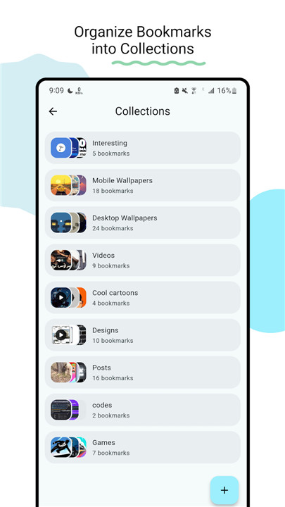 Create collections to keep your bookmarks organized and your space clutter-free.