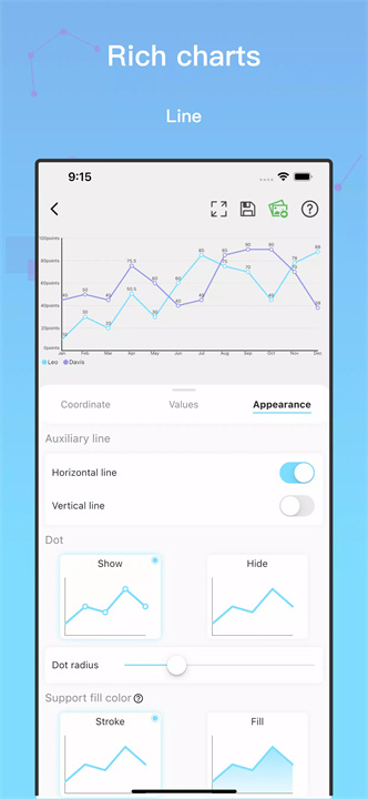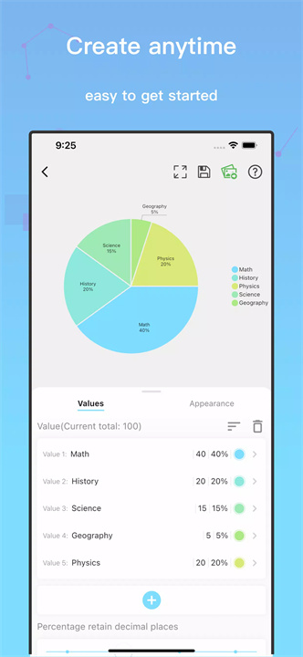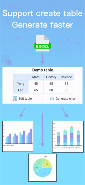 在线创建:可直接在应用内创建数据表格,一键转换为图表。