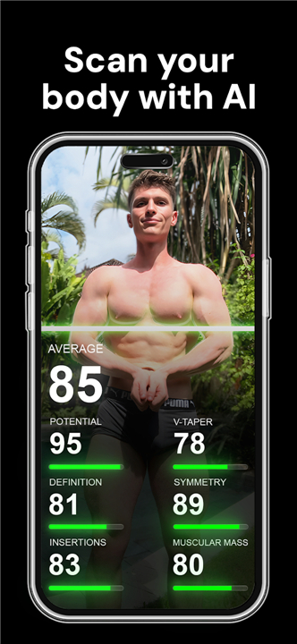 A: The AI Body Scan uses a photo to analyze your unique physical proportions, identifying which muscle groups are naturally strong and which may be lagging behind. This allows the app to prioritize specific areas in your training sessions, ensuring that you develop a symmetrical and visually pleasing body rather than just gaining bulk in a disorganized way.