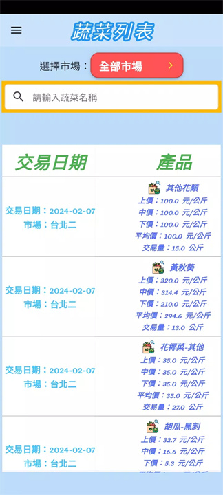 i農市是一款提供最新农产品(蔬菜)交易资讯的应用程序,帮助用户随时了解各地蔬菜市场的动态。