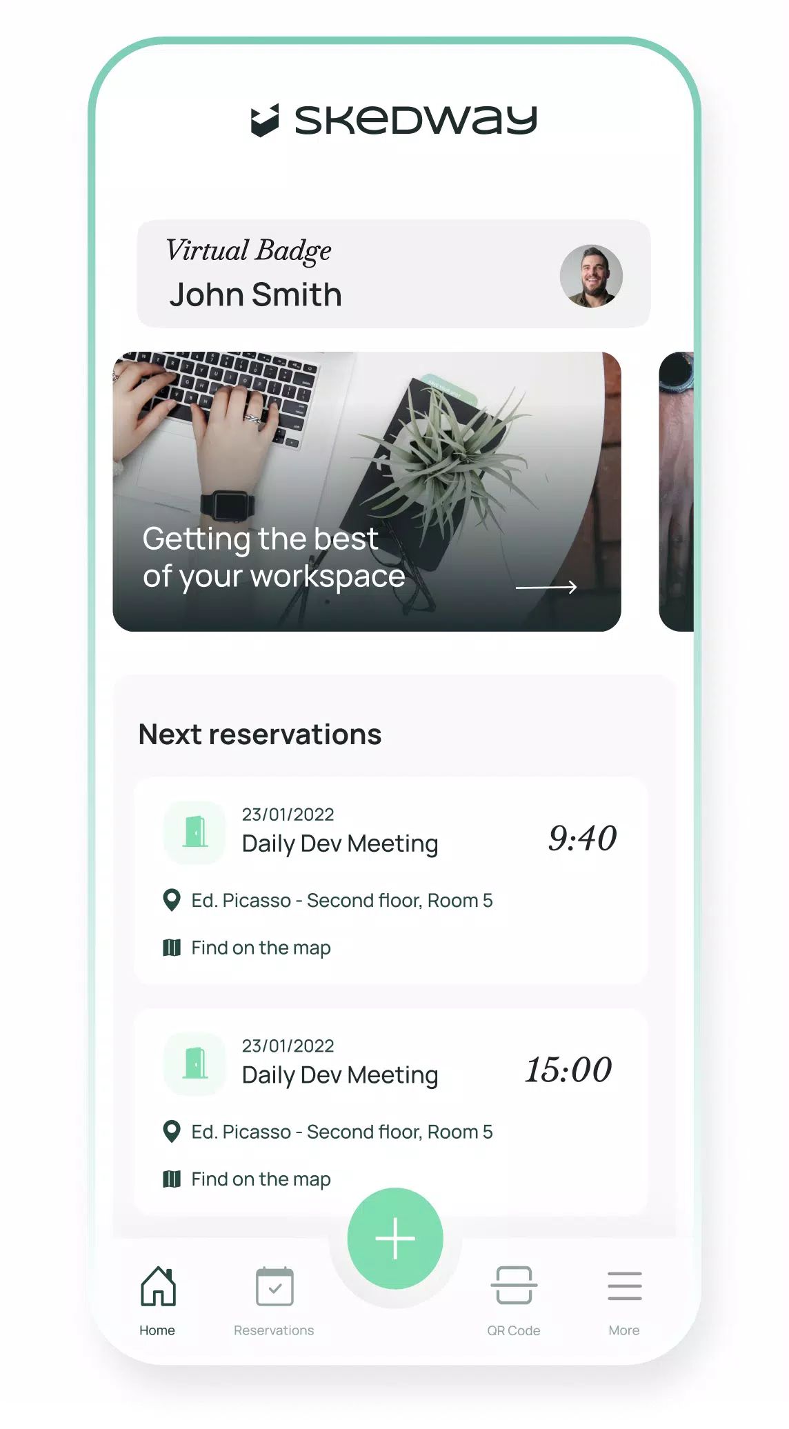 Your device becomes the key to the workspace. Skedway allows you to check in to rooms and desks simply by scanning a QR code sticker placed in the space. This eliminates the need for costly, permanent displays or hardware—just print a QR code sticker and you’re ready to go.