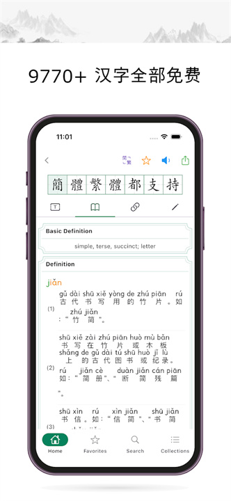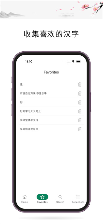 收藏功能:用户可以收藏自己喜爱的汉字,便于快速访问。