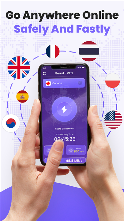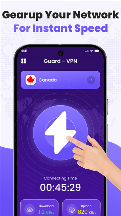 • Instant Protection: One tap connects you to a secure tunnel with a clean, user-friendly interface.