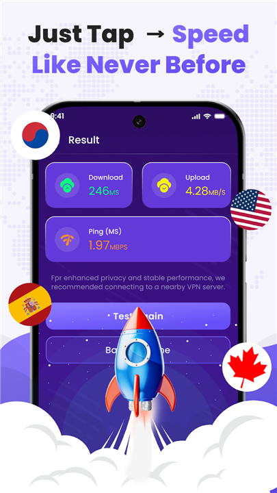 • All-in-one convenience — secure VPN plus speed test in one app.