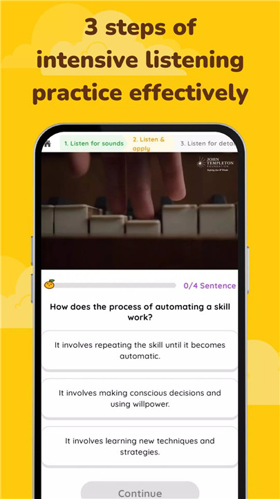 Tailored to boost your listening skills, the personalized roadmap offers slightly challenging exercises designed for 5-10-minute sessions, making it perfect for daily practice.
