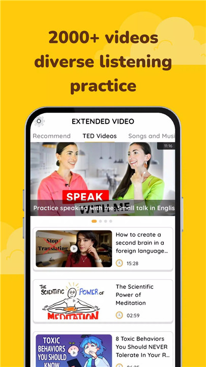 Access an expanded library of videos suggested based on your preferences and proficiency level. Each video includes subtitles for easy word lookup and vocabulary saving to your personal notebook.
