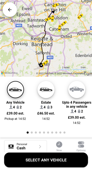 A: Booking a ride is as simple as three taps. Open the app, enter your pickup and drop-off locations, and choose your vehicle type—be it Saloon, Estate or MPV. You’ll instantly see your fare quote, then confirm or schedule for later. That’s it; you’re good to go.