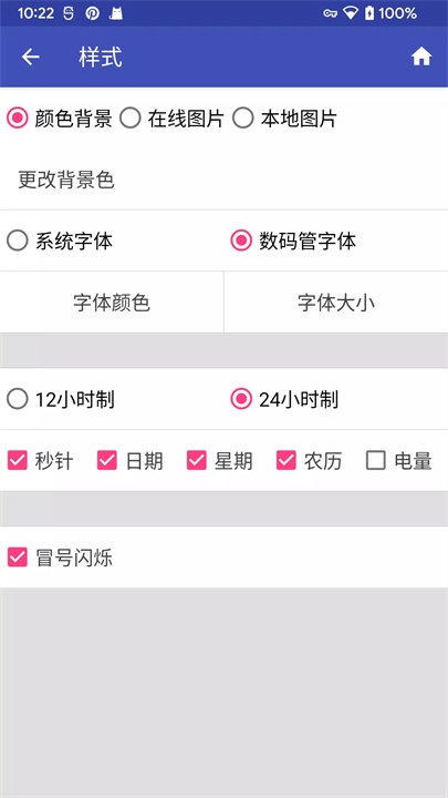 秒表与时钟自由切换:你可以选择12小时制还是24小时制,秒针可隐藏,冒号还可以闪烁,让时间变得有趣又炫酷。