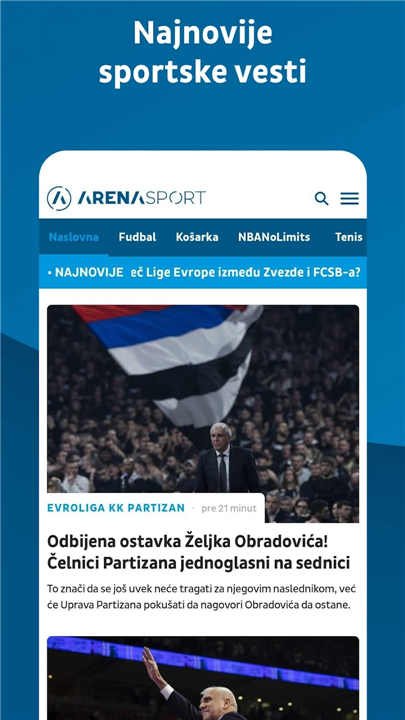 Najnovije vesti iz sveta sporta. Download the latest version of Arena Sport to enjoy new features and updates immediately!