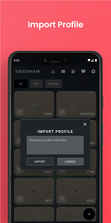 Immerse yourself in a rich variety of crosshairs crafted by both seasoned gamers and passionate enthusiasts within the app. Whether you seek accuracy and efficiency or a dash of fun and flair, there's a crosshair tailored just for you. Let your imagination run wild by creating your own distinctive crosshairs, personalizing your gaming experience to reflect your unique style. Delve into the intricate features of your selected crosshairs, share your favorites with friends, or effortlessly import the profile code into VALORANT to enhance your gaming journey.
