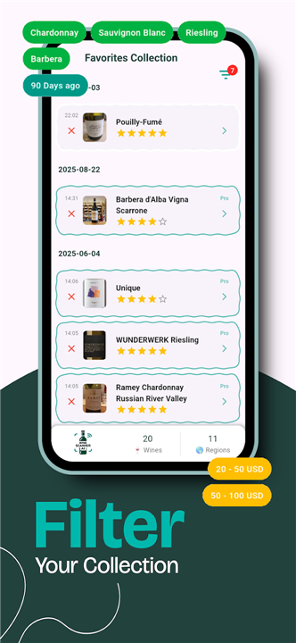 • Personalized Experience: Unlike generic cellar managers, our focus is on enhancing your unique tasting journey with advanced filters for seamless organization.