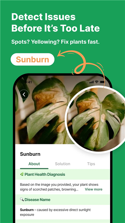 • Yellow leaves? Brown spots? Curling drama? Scan and find out.