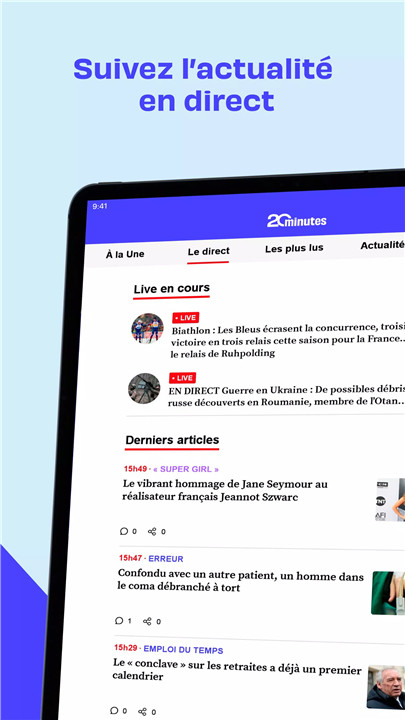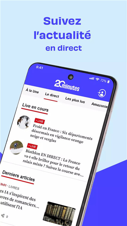 The 20 Minutes app updates news 24/7, 7 days a week, delivering verified content created by professional journalists. Whether it’s breaking news, sports, entertainment, or tech updates, you’ll get accurate and timely information you can trust.