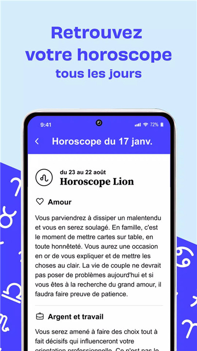 Check your complete daily horoscope for insights into your day. Plus, enjoy the app in dark mode for comfortable reading, especially in low-light environments.