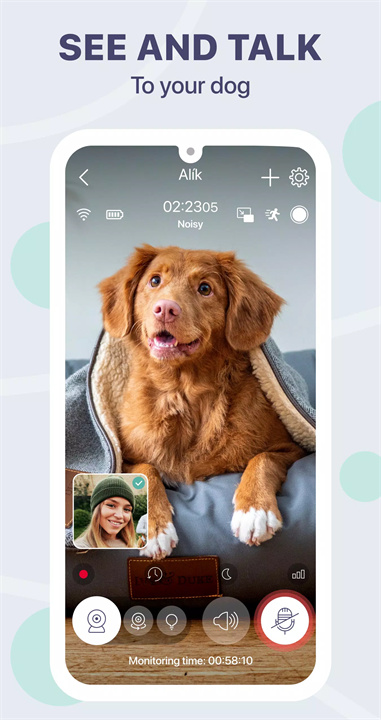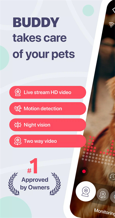 [Buddy Dog Monitor: 宠物监视器]——是一款极为便捷且高效的宠物监控工具,它能够帮助您解决分离焦虑、监控宠物安全,并为您提供一份安心。与宠物互动,沟通无距离!