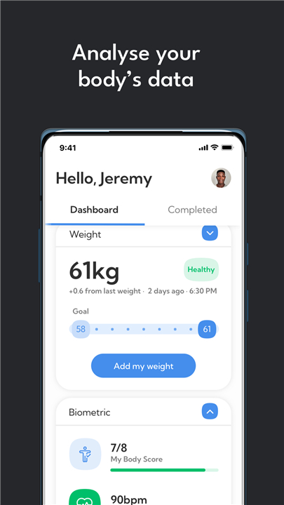 • Understand your biometrics – Gain deeper insights into your body composition, hydration levels, and activity patterns.