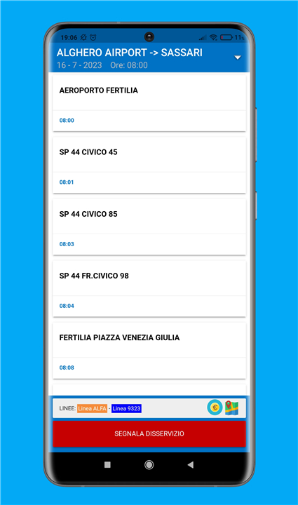 A: Yes. Since timetables are drawn in real time from official Open Data provided by the Sardinia Region, you’ll need to be online to fetch the latest schedule updates and route information.